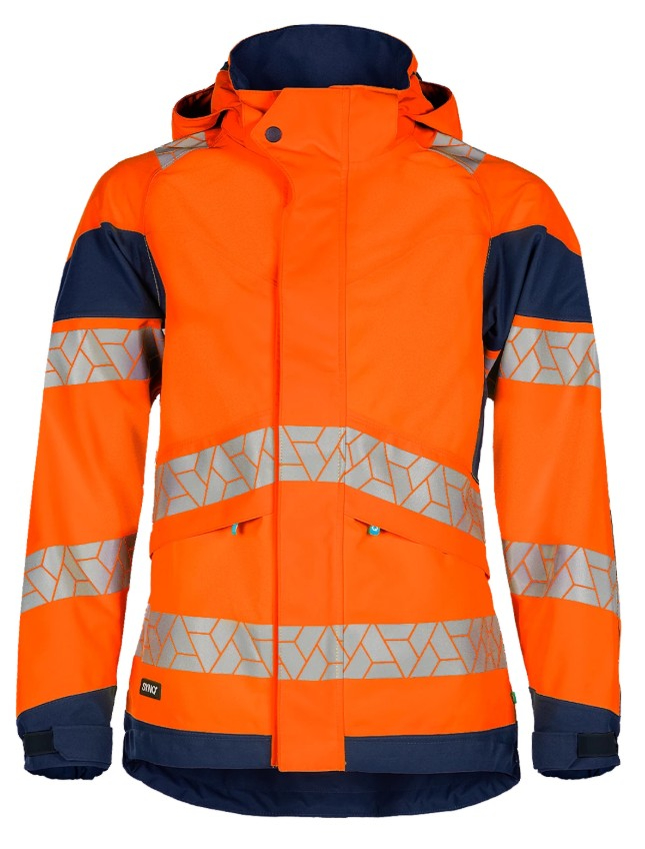 SYNQ & SAFE • Sta in de schijnwerpers met de SYNQ® Jacklight Women. De fluokleuren en reflecterende banden garanderen een uitstekende zichtbaarheid, terwijl de waterdichte, winddichte en ademende stof met getapete naden vrouwelijke professionals ook 100% droog houdt. En de mooi getailleerde, vrouwelijke pasvorm? Die doet je nog meer stralen!
